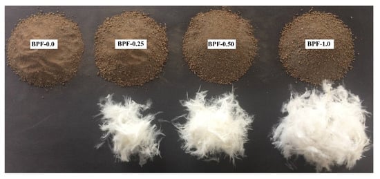 | BPF-0.50 | Earthen mix incorporating 0.50% of BPFs (by weight of clayey soil) |