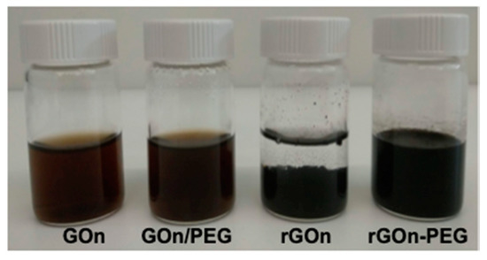 - Zhang, S.; Xiong, P.; Yang, X.; Wang, X. Novel PEG functionalized graphene nanosheets: Enhancement of dispersibility and thermal stability. Nanoscale 2011, 3, 2169–2174. [Google Scholar] [CrossRef]