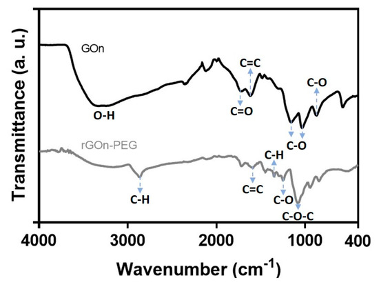 3.2. Chemical Characterization of GOn and rGOn-PEG Nanosheets