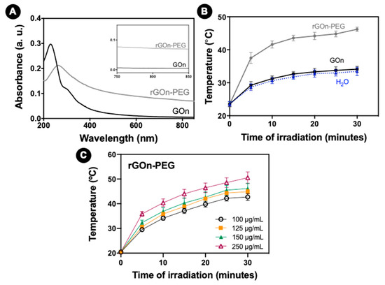 3.5. In Vitro Photothermal Effect of rGOn-PEG