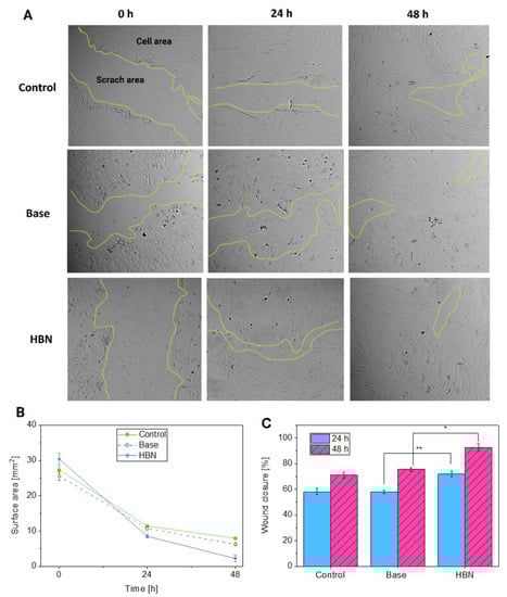 2.8. In Vitro Scratch Assay