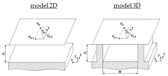 Representation of the screw channels in the two- and three-dimensional melt-conveying models. Ignoring the curvature of the screw, the flat-plate model with moving barrel was applied in both cases.