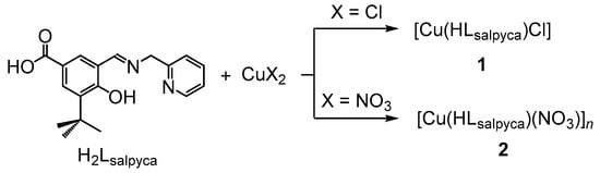 2.3. Synthesis of [Cu(HLsalpyca)Cl] (1)