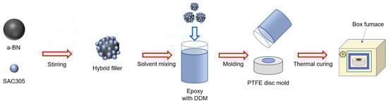 Fabrication procedure of epoxy composite filled with a-BN/SAC305 hybrid filler.