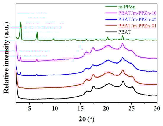 WAXD results of m-PPZn, PBAT, and PBAT/m-PPZn composites.