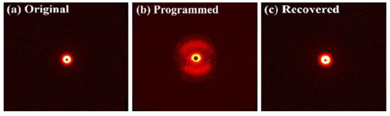 2D-SAXS patterns of (a) original, (b) programmed, and (c) recovered SiO2/SMPU samples.