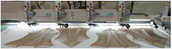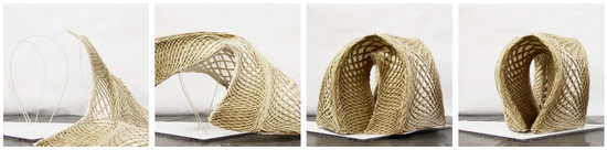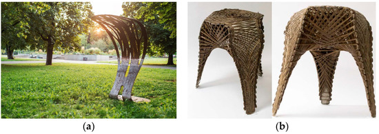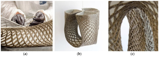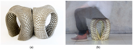 - Costalonga Martins, V.; Cutajar, S.; van der Hoven, C.; Baszyński, P.; Dahy, H. FlexFlax Stool: Validation of Moldless Fabrication of Complex Spatial Forms of Natural Fiber-Reinforced Polymer (NFRP) Structures through an Integrative Approach of Tailored Fiber Placement and Coreless Filament Winding Techniques. Appl. Sci. 2020, 10, 3278. [Google Scholar] [CrossRef]