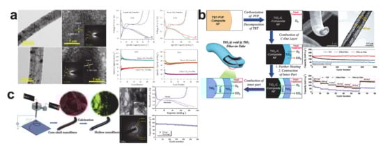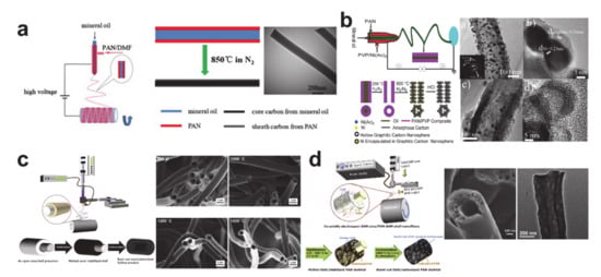 - Chen, Y.; Lu, Z.; Zhou, L.; Mai, Y.-W.; Huang, H. Triple-coaxial electrospun amorphous carbon nanotubes with hollow graphitic carbon nanospheres for high-performance Li ion batteries. Energy Environ. Sci. 2012, 5, 7898–7902. [Google Scholar] [CrossRef]