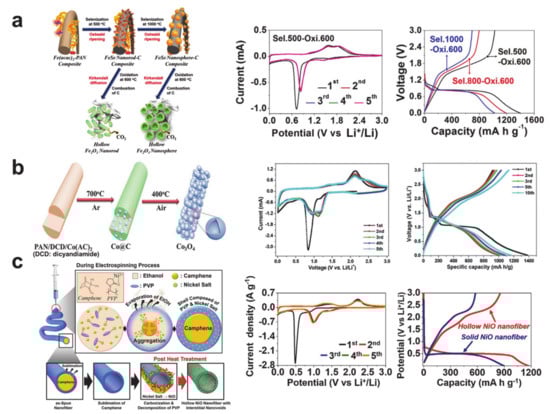 - Lee, B.-S.; Son, S.-B.; Park, K.-M.; Yu, W.-R.; Oh, K.-H.; Lee, S.-H. Anodic properties of hollow carbon nanofibers for Li-ion battery. J. Power Sources 2012, 199, 53–60. [Google Scholar] [CrossRef]
