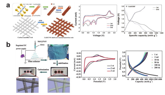 - Pampal, E.S.; Stojanovska, E.; Simon, B.; Kilic, A. A review of nanofibrous structures in lithium ion batteries. J. Power Sources 2015, 300, 199–215. [Google Scholar] [CrossRef]