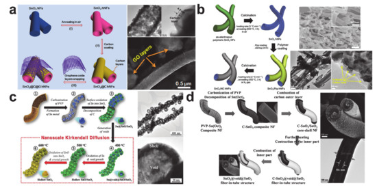 - Cho, J.S.; Kang, Y.C. Nanofibers Comprising Yolk–Shell Sn@void@SnO/SnO2 and Hollow SnO/SnO2 and SnO2 Nanospheres via the Kirkendall Diffusion Effect and Their Electrochemical Properties. Small 2015, 11, 4673–4681. [Google Scholar] [CrossRef]