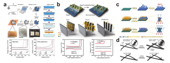 - Lang, J.; Jin, Y.; Luo, X.; Liu, Z.; Song, J.; Long, Y.; Qi, L.; Fang, M.; Li, Z.; Wu, H. Surface graphited carbon scaffold enables simple and scalable fabrication of 3D composite lithium metal anode. J. Mater. Chem. A 2017, 5, 19168–19174. [Google Scholar] [CrossRef]