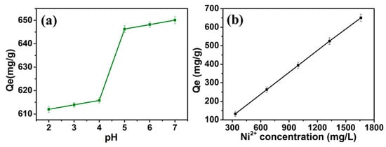 Effect of (a) pH (b) initial Ni2+ concentration on the adsorption capacity of gauze@PEI0.4/PEGDE1/TETA0.6.