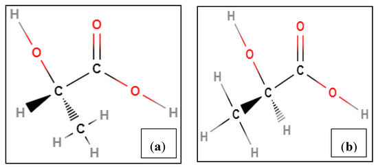 Chemical structure of (a) L-lactic acid and (b) D-lactic acid.
