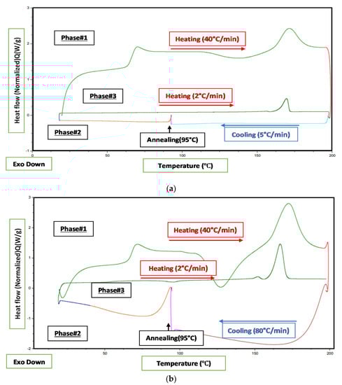 Differential scanning calorimeter (DSC) heating–cooling cycle for (a) Case A and (b) Case B.
