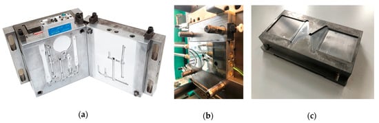 - Berger, G.R.; Friesenbichler, W.; Gruber, D.P.; Pacher, G.A.; Macher, J. Rapid heat cycle molding, surface topography and visual appearance of injection molded parts. Research work in Leoben in the last 10 years. In Proceedings of the Society of Plastics Engineers’ Annual Technical Conference (SPE ANTEC), Las Vegas, NV, USA, 28–30 April 2014. [Google Scholar]
