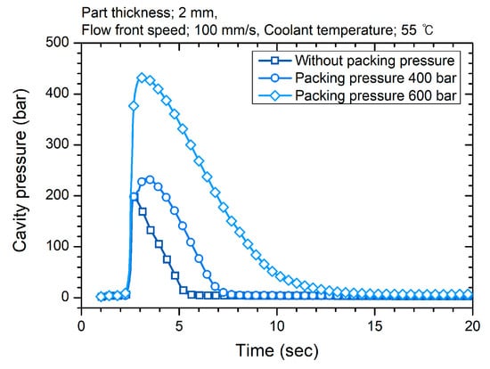 Cavity pressure under different packing pressure conditions.