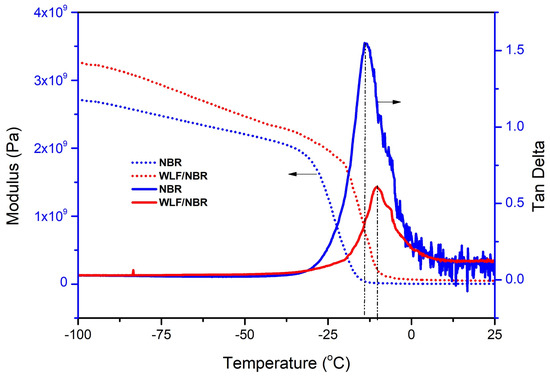 3.4. Effect of WLF on Dynamic Mechanical Properties of WLF/NBR Composite
