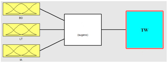 ANFIS was built in MATLAB software (MathWorks, Inc, Natick, MA, USA) and different membership functions were used to train ANFIS. Three membership functions of building orientation, layer thickness, and impact angle were chosen to create the ANFIS model as shown in Figure 5. The generalized bell membership function gives the lowermost training error of total weight gain, so it was implemented for the ANFIS training method in this work. The fuzzy rule construction of ANFIS when generalized bell membership function is adopted based on the Sugeno fuzzy model as shown in Figure 5.