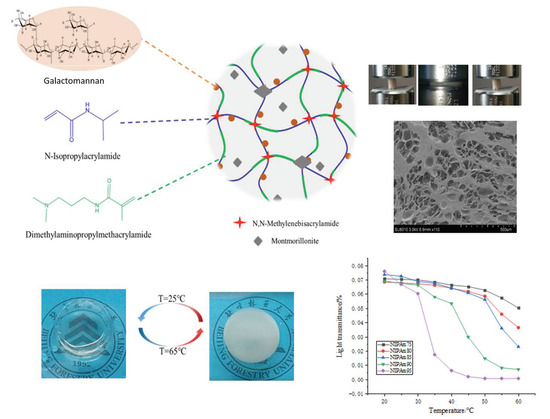 2.2. Preparation of the GA–P(NIPAM-co-DMAPMA) Hydrogel