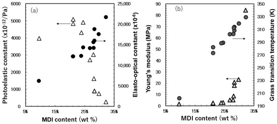 Mitsuzuka, M.; Kinbara, Y.; Fukuhara, M.; Nakahara, M.; Nakano, T.; Takarada, J.; Wang, Z.; Mori, Y.; Kageoka, M.; Tawa, T.; et al. Relationship between Photoelasticity of Polyurethane and Dielectric Anisotropy of Diisocyanate, and Application of High-Photoelasticity Polyurethane to Tactile Sensor for Robot Hands. Polymers 2021, 13, 143. https://doi.org/10.3390/polym13010143