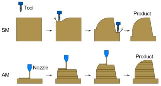 Subtractive manufacturing (SM) and additive manufacturing (AM).