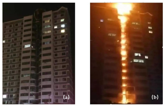 - Fire Discussion: Kaifeng, Henan 314 Fire, from the 3rd Floor to the 17th Floor in Two Minutes! Available online: https://www.sohu.com/a/302558104_120034565 (accessed on 20 March 2019). (In Chinese).
