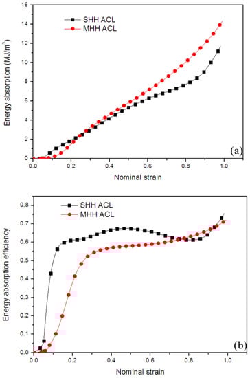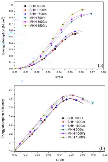 - As the strain rate increases, the energy absorption and energy absorption efficiency will also increase. In general, the MHH material has more energy absorption than the SHH material.