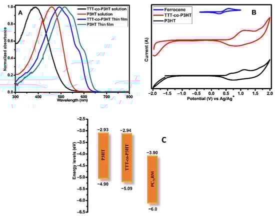 | TTT-co-P3HT | 386 | 534 | 2.32 | 492 | 626 | 1.98 | −5.09 | −2.90 | 2.19 |
