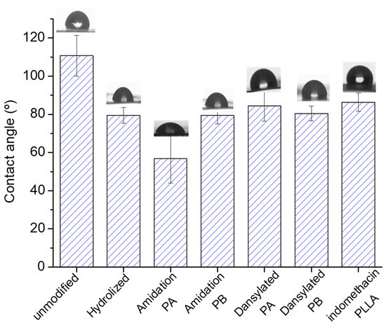 - Guo, C.; Xiang, M.; Dong, Y. Surface modification of poly (lactic acid) with an improved alkali-acid hydrolysis method. Mater. Lett. 2015, 140, 144–147. [Google Scholar] [CrossRef]