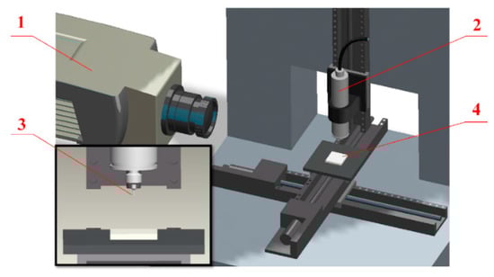 A high-precision micromilling setup was used in this work (Figure 2), and it included a high-speed electric spindle (NAKANISHI, E3000), three linear precision translation stage (Puai Nano Displacement Technology, Co., Ltd., M304, Shanghai, China), and the infrared camera (IGA 6 Advanced, Lumasense IMPAC). The ultra-fine particle cemented carbide micromilling cutter (Mitsubishi Japan, purchased from Misumi China, model MS2SS) was applied as the machine tool with a diameter of 0.5 mm and 1 mm. The micromilling parameters for workpiece machineability analysis are displayed in Table 2. Moreover, the machining process was conducted without using any cutting fluid, and the room temperature was kept at 20 °C.