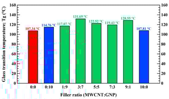 Experimental results of glass transition temperatures for the studied nanocomposite specimens with various filler ratios.