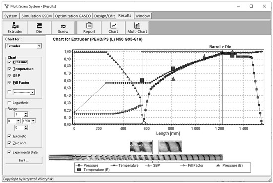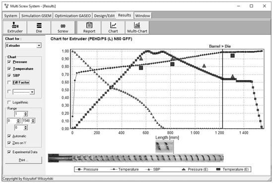 Overall extrusion characteristics, simulation and experimentation data using the GSEM model—starve fed single screw extrusion: SBP—solid bed profile, E—experiment [68].