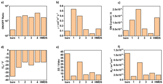 38]. The presence of such densely packaged interlayers may reduce the charge carrier trapping effect at the dielectric–semiconductor interface.