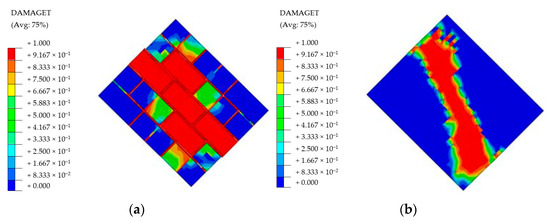 The comparison between these two modeling strategies is made in Figure 16 and Figure 17. It is an important note that such diagonal wallet tests are highly dependent on the boundary conditions. For this study, support zones were provided as 15% of the relevant edge length and no constraints were enforced on the remaining free edges. Nevertheless, this research specifically aims to investigate the bonding materials between the walls and frames. Therefore, sensitive boundary condition analysis was neglected as it is not the main concern of this paper.