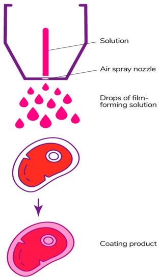 Biopolymers are widely implemented and can be used as coatings and films [4,22]. Coating involves the formation of a cover directly on the surface of food products, whereas films are structures that are used separately after formation [23].