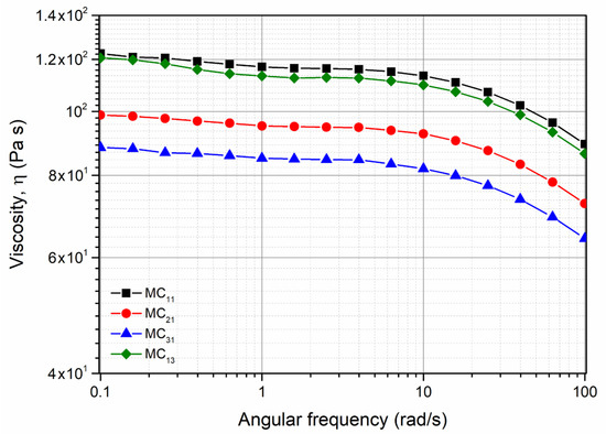 As is well known, the Newtonian viscosity is strongly dependent on the molecular weight (see Equation (2)).