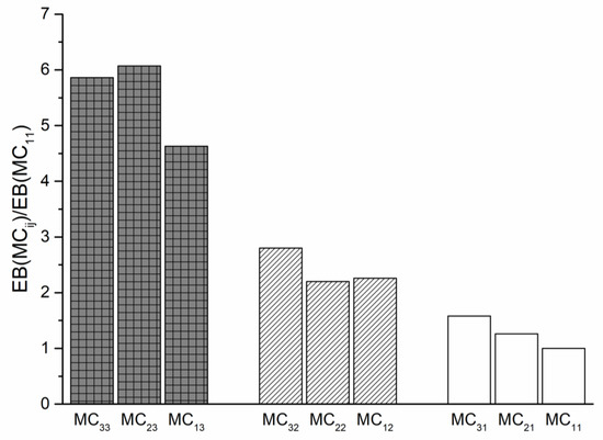 In Figure 6, the dimensionless values of EB are plotted for all the samples. The dimensionless values have been calculated as the elongation at break for each sample divided that of the sample MC11, i.e., the sample processed and characterized in a dry state.