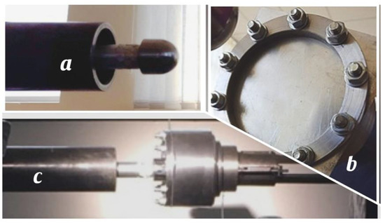 The samples used for these tests consisted of an aluminum metal plate with a thickness of 0.5 mm and a free diameter of 100 mm, on which a layer of polyurea-polyurethane nanocomposite of approximately 1 mm was previously deposited. Each sample was fixed (Figure 1b) and orientated, with the uncoated side towards the projectile launching direction. The experiments were carried out using a Hopkinson bar air propulsion system (Figure 1c), utilizing a spherical head projectile (Figure 1a). The impact strength obtained at the impact between the projectile and the samples was measured using a piezoelectric sensor connected to the mounting bracket of the tested aluminum plate. These experiments were performed on three types of materials: neat aluminum plate, polyurea coated aluminum plate (PU), and polyurea-polyurethane-MWCNTs nanocomposite-coated aluminum plates (PU-NC2, PU-NC3, and PU-NC4).