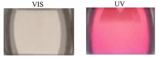 Irradiation was done with a fluorescent lamp (visible light) or using an ultraviolet spotlight (365 nm, Opsytech, Ettlingen, Germany). The power of UV LED was fixed at 10% via an LED controller (with a maximum nominal power density of 25 W/cm2); the sample-to-LED distance was maintained at 75 mm.