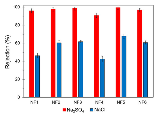 Na2SO4 and NaCl rejection capacity of prepared NF membranes.
