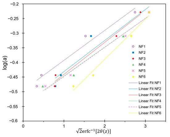 Here, a is the Stokes radius of the solute, is the geometric mean radius of the pores, and is the geometric standard deviation of the pore sizes. By inverting Equation (3) and using Equation (4), we can obtain Equation (5):