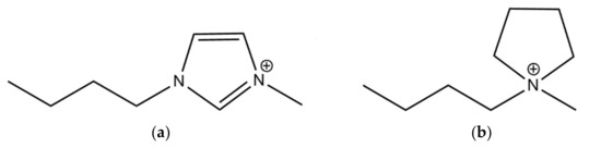 Structure of ILs cations: (a) 1-butyl-3-methylimidazolium; (b) 1-butyl-1-methylpyrrolidinium.