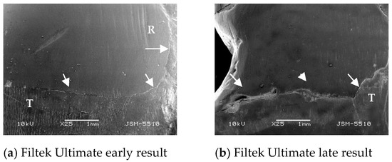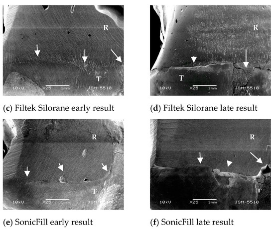 - Ernst, C.-P.; Galler, P.; Willershausen, B.; Haller, B. Marginal integrity of class 5 restorations: SEM versus dye penetration. Dent. Mater. 2008, 24, 319–327. [Google Scholar] [CrossRef] [PubMed]