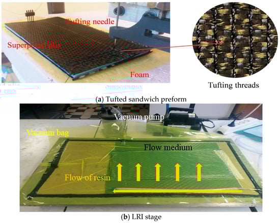 However, the research objects of these works are usually a sandwich structure with a pure foam core; different core materials are not considered. Changing the design and raw materials of the core construction can affect both the compressive and impact properties of the sandwich composite []. In addition to TT reinforcement, another method to improve load capacity is to adopt core materials with higher mechanical properties. Non-woven fabrics are considered a potential replacement.