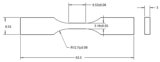 Tensile tests were performed using an Instron Universal Testing Machine (Model 3382). Five specimens were tested for each composition. The displacement rate for the tensile tests was kept to 1 mm/min. Tensile test properties were carried out according to ASTM D-638 type V, with a specimen thickness of 3 mm.