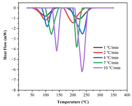 Endothermic curves of LP30 at different heating rates.