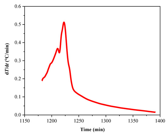 The Kissinger method, also known as the maximum method, is applicable for processes that occur under linear heating rate conditions. Given its convenience, it is the most widely used conversion rate method [33,34,35,36]. The method is shown as the following Equation (1):