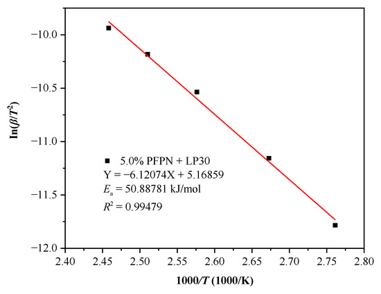 Ea plots of Kissinger model at different β in DSC experiments for LP30 + PFPN.