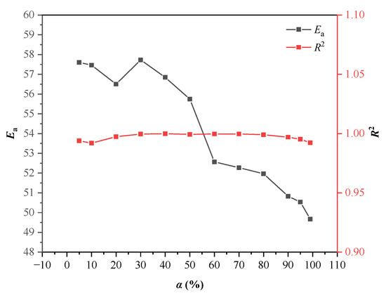 Ea and R2 under different α based on the FWO model.